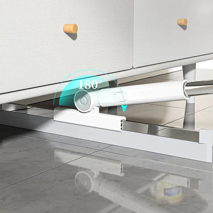 The 180° rotating silicone scraper head can clean narrow corners and hard-to-reach places. Whether it is under the bed, under the sofa, in the corner of the window, or under the locker, as long as the height is greater than 2" (5cm), the whole house can be easily cleaned.